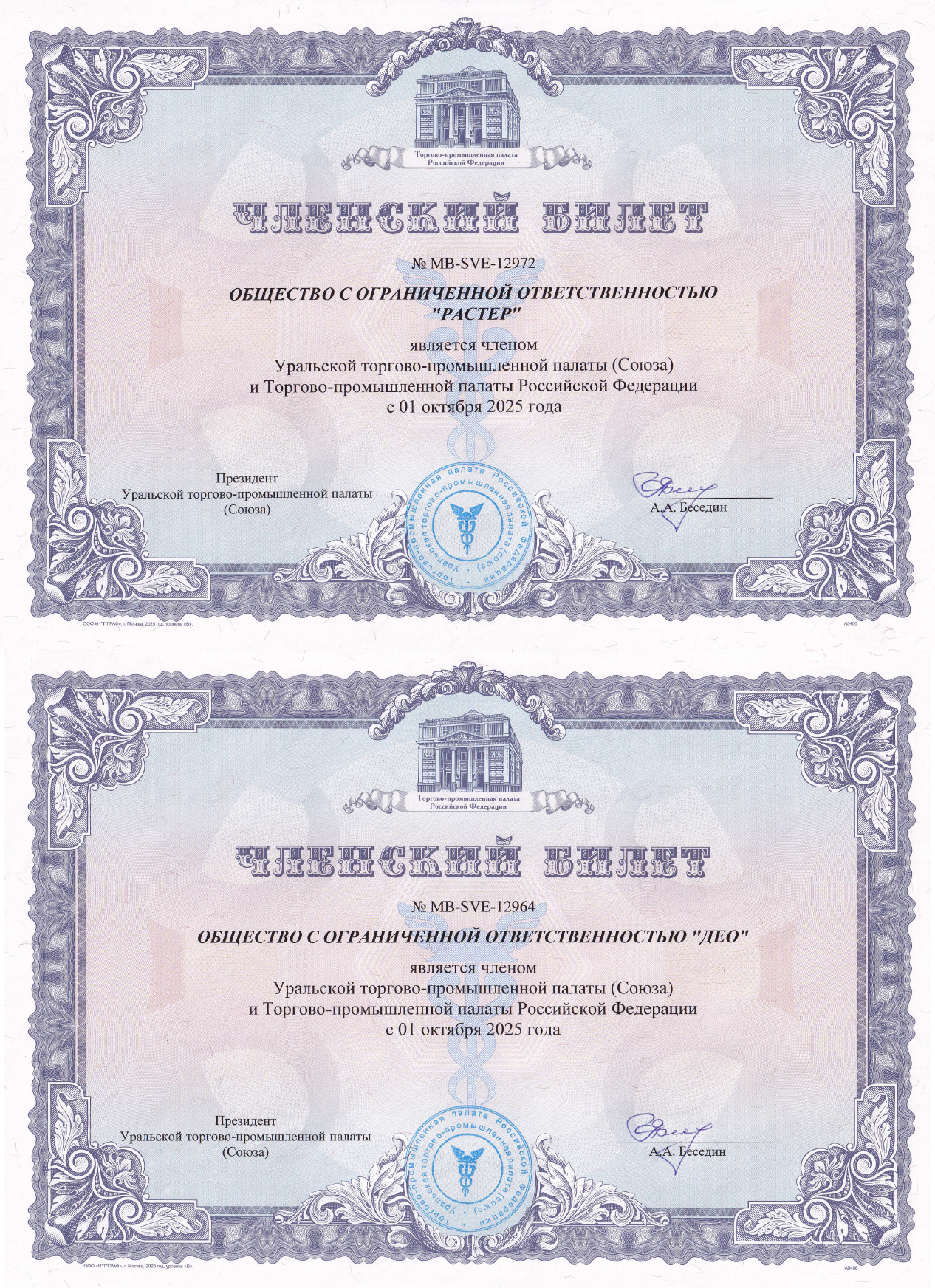 ООО «РАСТЕР» и ООО «ДЕО» стали членами Уральской торгово-промышленной палаты
